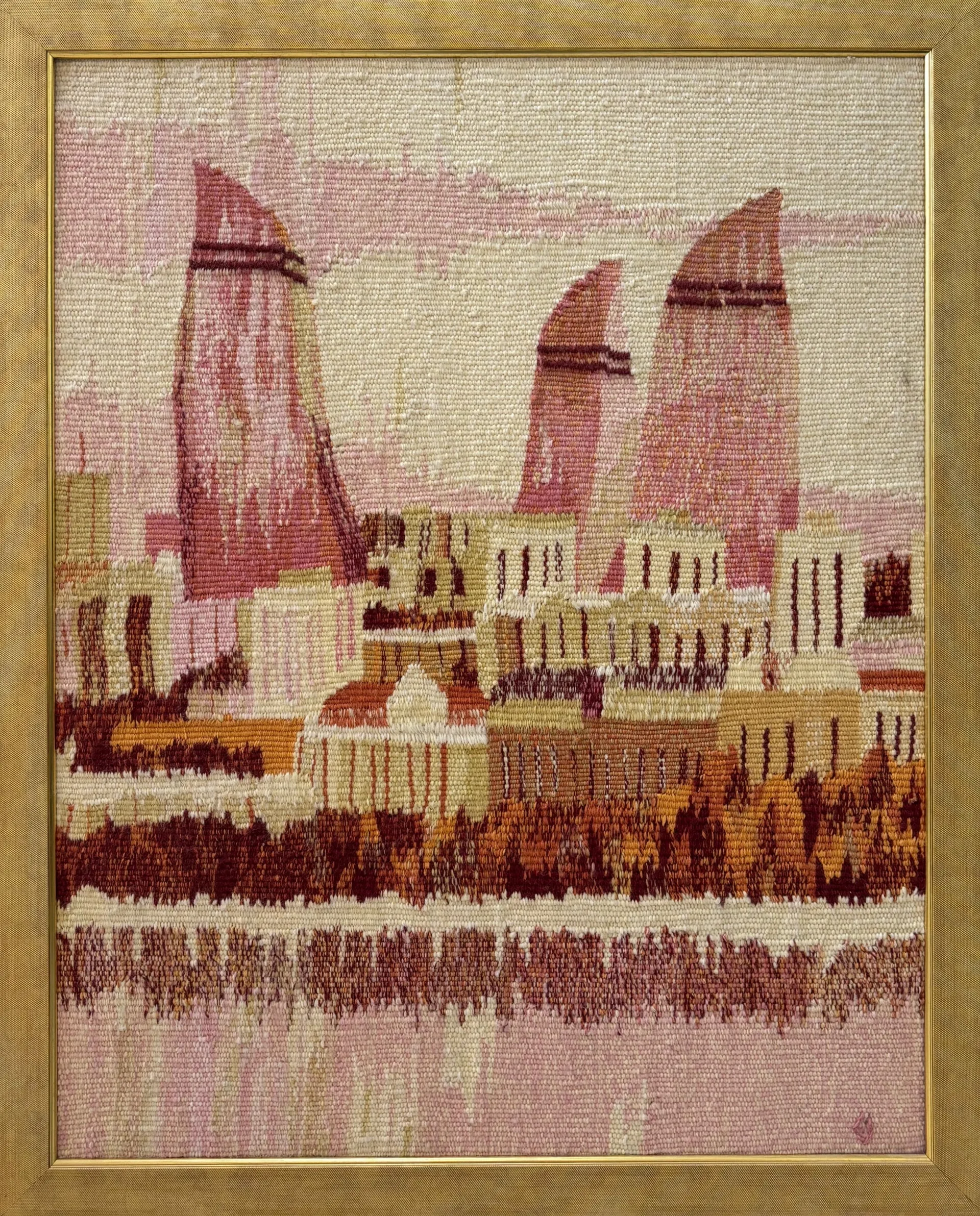 Wool tapestry on wood